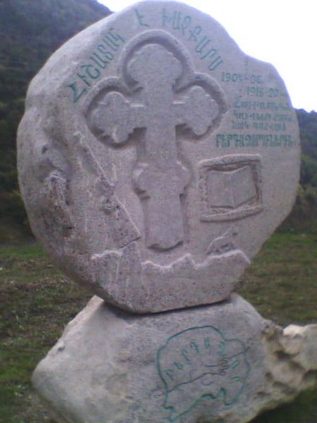 A monument in Berdadzor, Nagorno-Karabakh Republic, to Armenian victims of the 1905–1907 Armenian-Tatar Massacres.